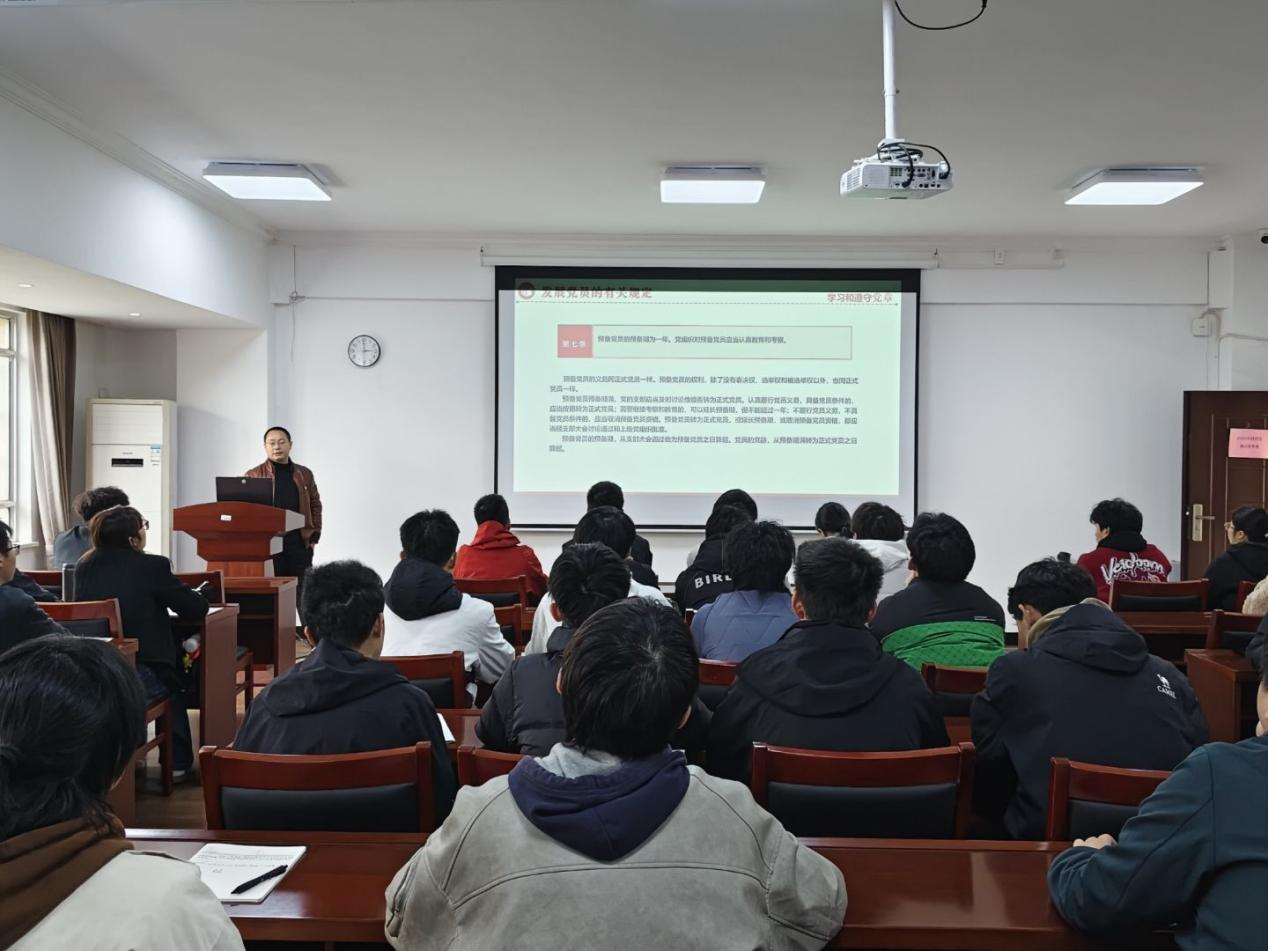 3月31日下午,304am永利集团党委委员、副院长邹志军在6211教室为学校第一期入党积极分子讲授《中国共产党章程》主题党课。