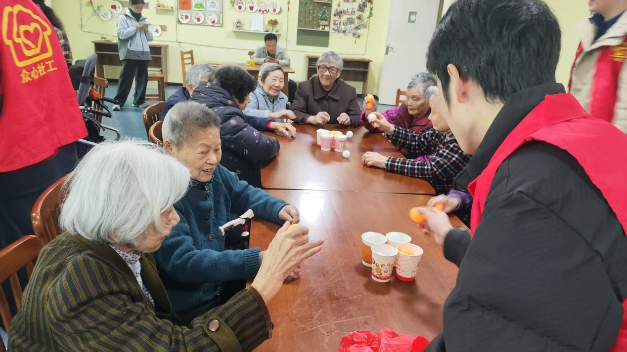 活动现场,志愿者们陪伴老人开展趣味“水上投球”游戏。老人们手持小球,在指定位置弹球入杯,现场欢声笑语不断。志愿者全程耐心引导、暖心陪伴,在互动中锻炼老人们的手眼协调能力,用陪伴与欢乐守护银发时光,传递温暖与关爱。