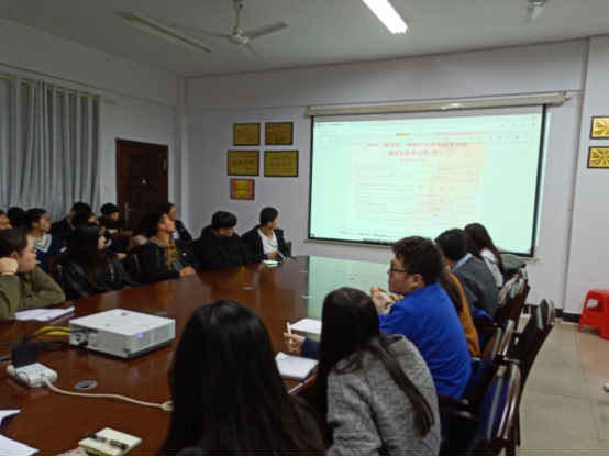 随后,廖金艳同学就2018“创青春”湖南省大学生创业大赛金奖实例进行解析,并从项目想法、选择赛道考虑清楚及组建团队等十个方面对比赛进行了详细地说明。廖金艳特别提到要珍惜机会,做项目过程中努力找到亮点,且要大胆表达自身的想法。最后,何小娅老师对此次会议做出总结,说明比赛的截止时间及规定,鼓励学生们踊跃参与,并多思考,多动手,培养自己的创新能力。
