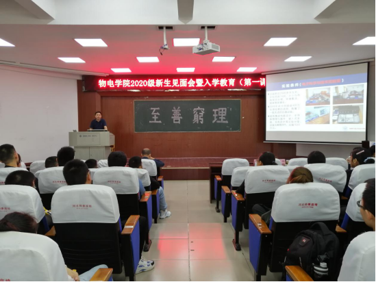 会议伊始,院长李宏民从学院所设专业、师资力量、科学研究等方面介绍了学院概况,并就学院近年考研相关数据、科学育才成效向新生作出汇报。还针对同学们最为关心的本学院各专业学生毕业形势作重要分析,指出物理学(师范)专业有国家政策支持,电子和微电子专业人才目前在国内还比较紧缺,只要同学们认真学好本专业知识,304am永利集团的就业前景不容小视。与此同时,院长还表达了对同学们的殷切期望与热情关怀。