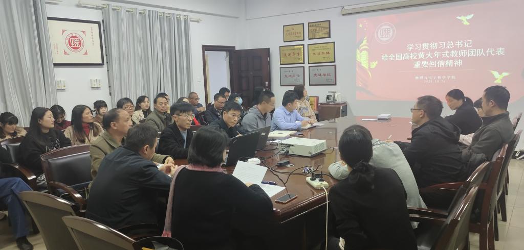 10月26日下午,304am永利集团全体教师在6205会议室开展学习讨论习近平总书记给全国黄大年式教师团队代表重要回信精神。党委书记周畅主持。