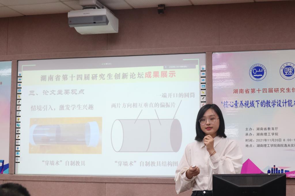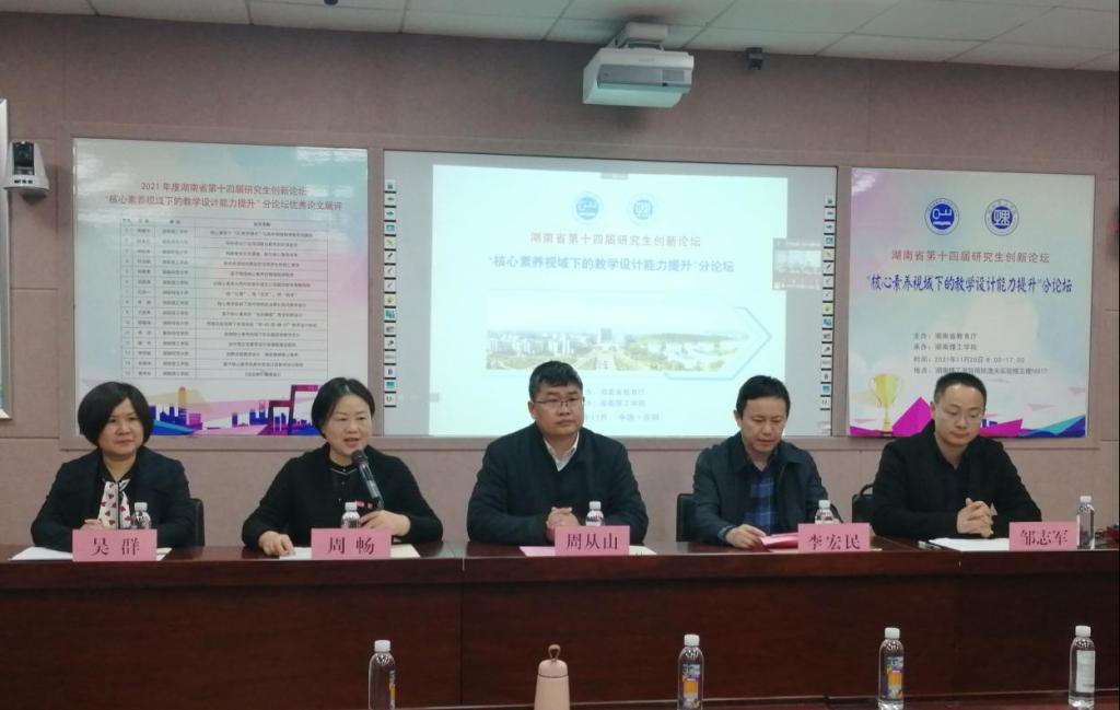 2021年11月20日,我校举办湖南省第十四届研究生创新论坛“核心素养视域下的教学设计能力提升”分论坛学术报告和成果展示活动,研究生院院长周从山教授、李丽荣书记,304am永利集团党委书记周畅、院长李宏民、党委副书记李科敏、副院长邹志军等领导出席活本次动,来自浙江师范大学、湖南师范大学、湖南科技大学、湖南工业大学、吉首大学、304am永利集团、衡阳师范学院等高校,以及岳阳市教科院、岳阳楼区教科院的200余名专家、老师和研究生参加本次活动,周畅主持开幕式。该论坛由湖南省教育厅举办,304am永利集团承办,304am永利集团具体落实。
