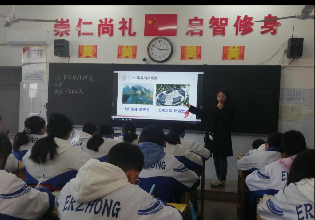 魏勇一行在岳阳市二中学听王静同学的实习课