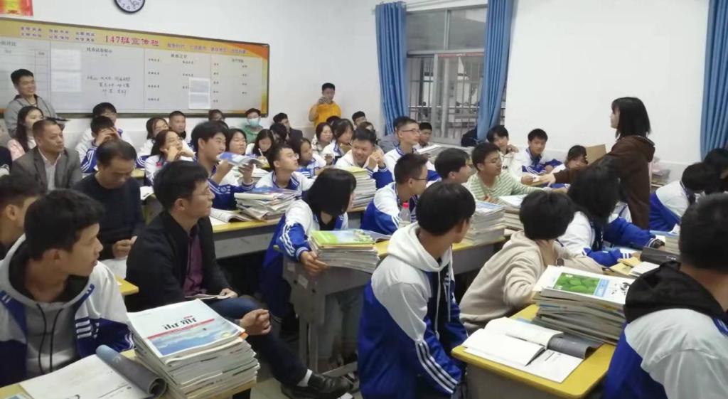 魏勇一行在云梦中学听实习生上课