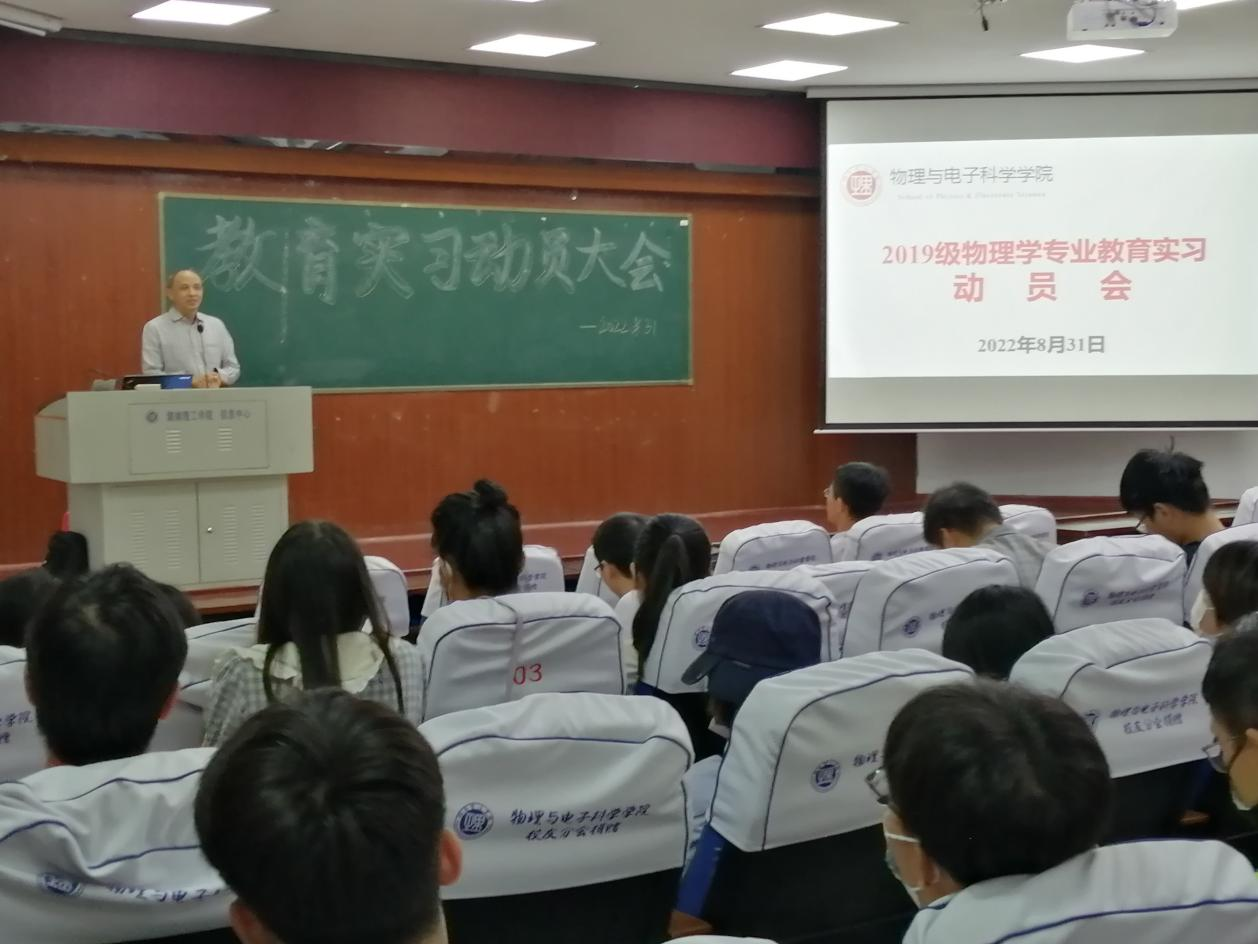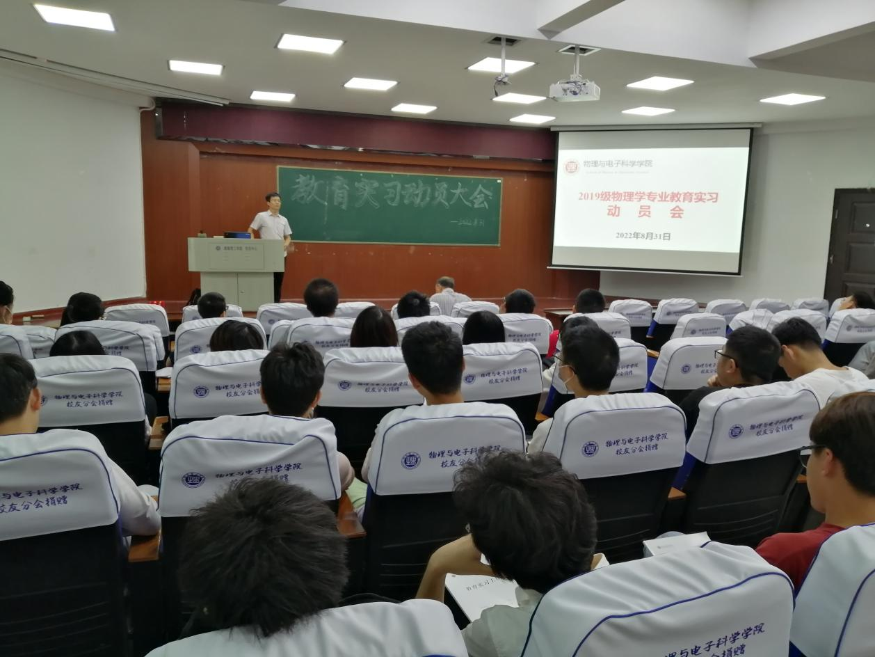 8月31日上午,304am永利集团在物电楼学术报告厅举行2022年物理学师范生教育实习动员大会,副院长魏勇、副书记李科敏,实习带队教师陈灏、李照宇、张娜和李奇云等出席,全体2019级物理学(教师教育)专业学生参加。