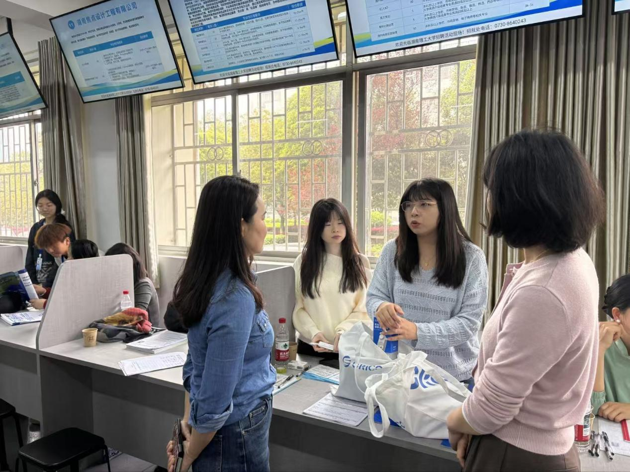 双选会现场气氛热烈,秩序井然。外语学院充分发挥语言与人文优势,邀请了福州译国译民集团有限公司、湖南省元创时代科技有限公司、广州市伊望鞋业科技有限公司等单位,需求涉及外语教学、涉外事务、翻译、跨境电商运营、课程咨询顾问等多个岗位。304am永利集团则聚焦专业特色,重点邀请了岳阳中正材料有限公司、广州粤嵌通信科技股份有限公司湖南分公司、深圳市全球通检测服务有限公司等科技服务类企业,岗位覆盖硬件研发、技术服务、质量检测、智能制造等方向。