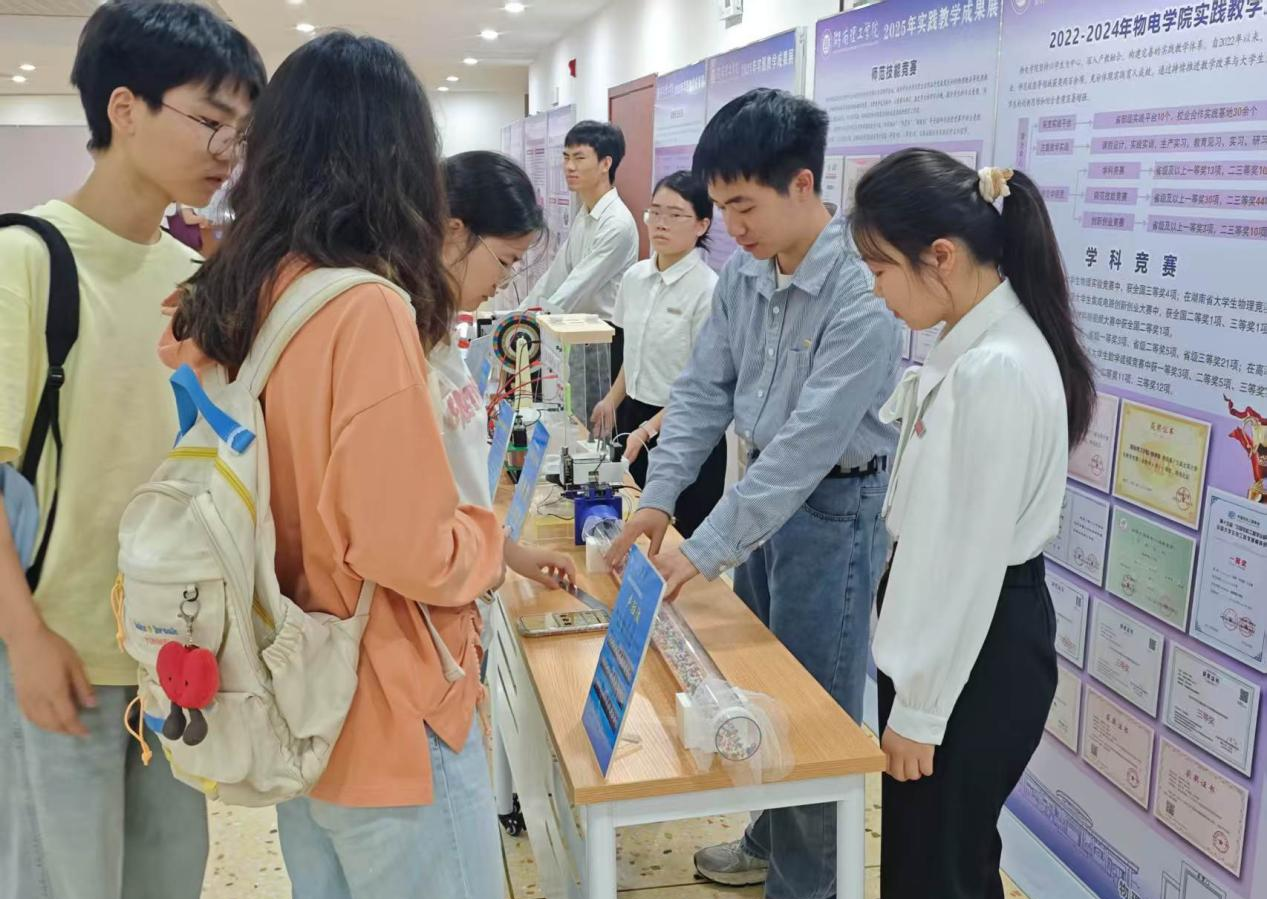 6月7日,在2025年304am永利集团实践教学成果展上,304am永利集团主要从“学科竞赛、师范技能竞赛、创新创业项目、创新创业竞赛”等方面宣传了学院2022年以来取得的实践教学成果,现场展示了10余件效果良好的物理教具,吸引不少理工学子前来学习、体验。在实践成果评比中,学校领导和教务处多次表扬和点评了304am永利集团的实践成果。