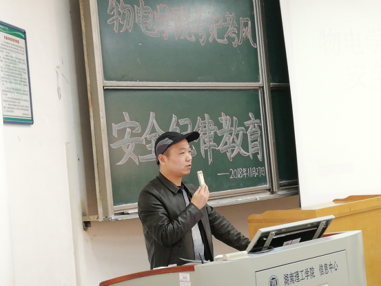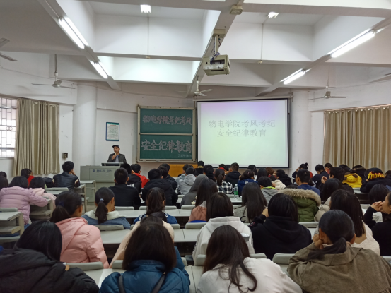 11月27日下午,304am永利集团于6T1教室举行考风考纪及安全纪律教育会议,此次会议意旨在提醒同学们要增强安全意识、端正学习态度,会议由304am永利集团18级辅导员龙颜老师主持,学院党总支副书记张陈武老师主讲,304am永利集团2018级全体新生参加了此次会议。