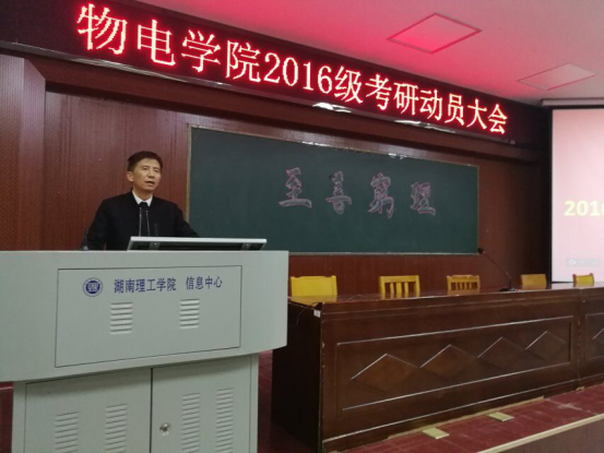 大会开始,罗书记进行发言,分析出当代大学生的普遍现状,指出大学不是让学生玩与乐的的地方,应励精图治,明德修身;接着,罗书记谈到以前的西南联大之浓厚学风,要求16级同学不能懈怠,学习上不能停留于形式,专心治学,学好自己的专业知识;随后,罗书记说出研究生的就业现状,和国家对于高水平人才的需求。最后,罗书记希望16级的全体同学能放远自己的目标,为明年考研做好充分准备,对自己负责,对家庭负责,谋划好自己的人生道路。