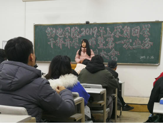 何小娅老师就2019年的团学工作计划进行发言,提出团学的每位成员对同学们的思想引领要充满正能量,将基层团建、党建建设等活动落实好。随后张恒道老师就2019年的团学重点工作进行解析,宣传方面上要积极向上,规定团学日常的工作要高质量完成,并注意同学们的人身财产安全及日常安全隐患等内容。最后,张陈武总结发言道,肯定了上学期学院团学的工作,分析工作上的不足,提出在学校的飞速发展过程中,学院有更多的上升空间。并强调每位成员作为一名学生,要意识到学习的重要性,希望团学各干部干事协助老师完成学院工作,新学期新气象,希望每位团学干部能够创造更好的成绩,树立先进典范,充分发挥先锋模范表率作用。