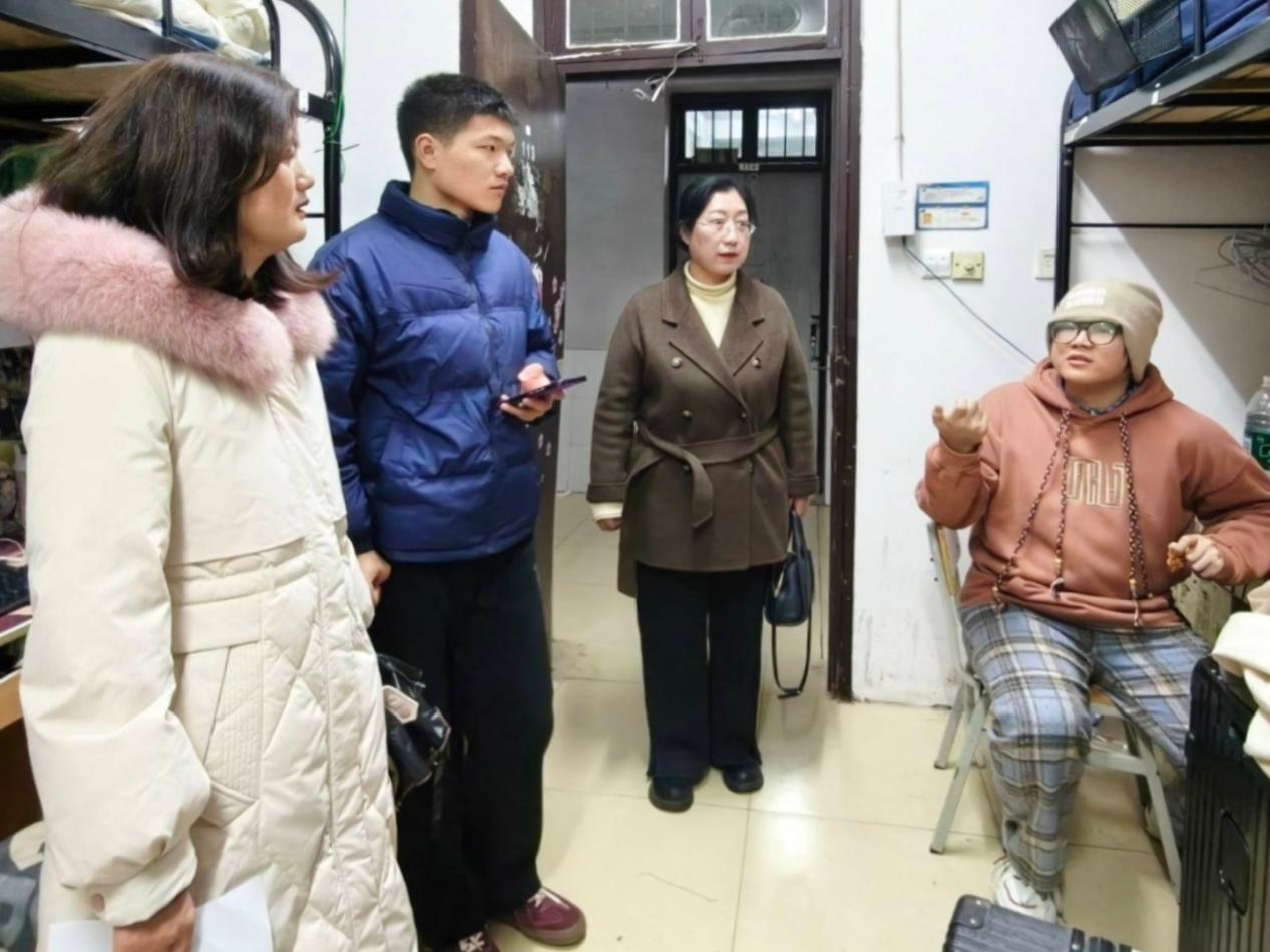 走访中,老师们查看宿舍环境、了解学生返校后的学习生活情况,叮嘱学生注意用电安全、保持卫生、规律作息,营造安全文明的住宿氛围;鼓励各年级学生快速调整状态投入新学期学习,重点关注毕业班备考、就业进展与生活需求,提醒其劳逸结合,遇困难及时和老师沟通。